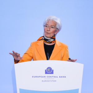 3月6日,欧洲中央银行行长拉加德在德国法兰克福欧洲央行总部举行的新闻发布会上讲话。