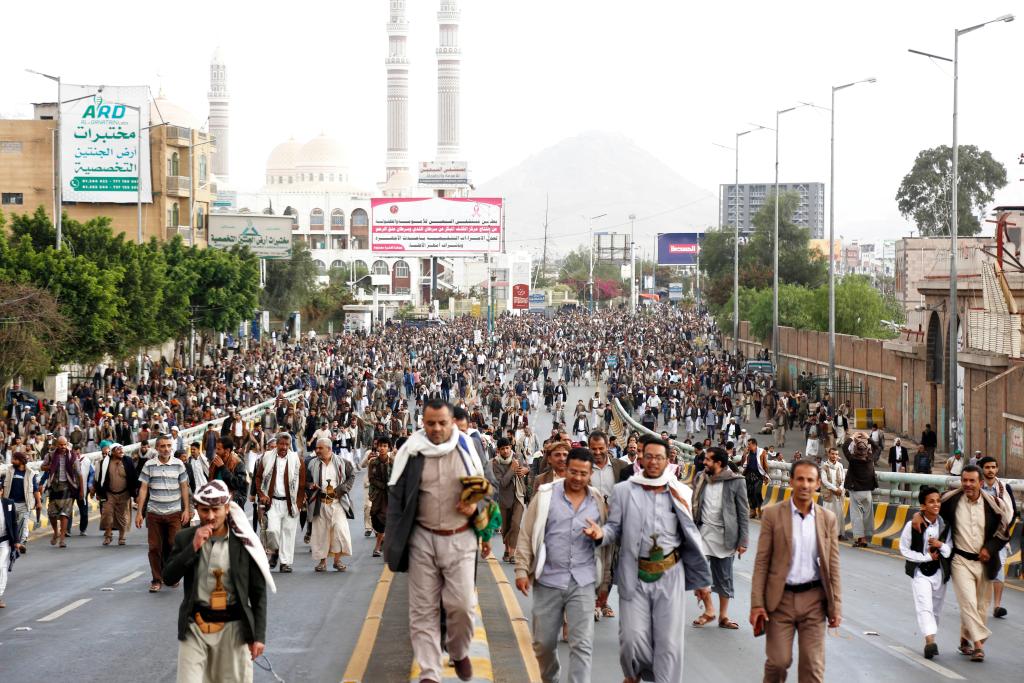 数万民众17日在也门胡塞武装控制的首都萨那举行大规模集会,抗议美军对也门境内胡塞武装目标进行空袭。