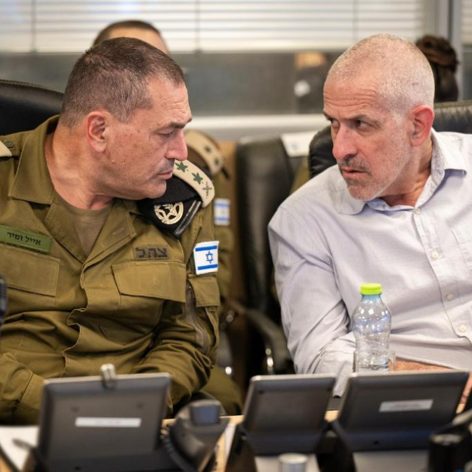 3月18日,以色列国防军总参谋长扎米尔(左)和以国家安全总局(辛贝特)局长巴尔在以色列空军地下作战中心指挥对加沙地带的空袭。
