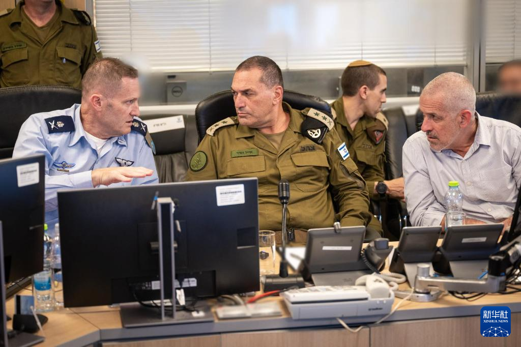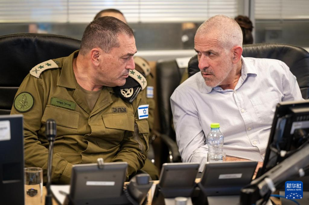 3月18日,以色列国防军总参谋长扎米尔(前中)和以国家安全总局(辛贝特)局长巴尔(前右)在以色列空军地下作战中心指挥对加沙地带的空袭。