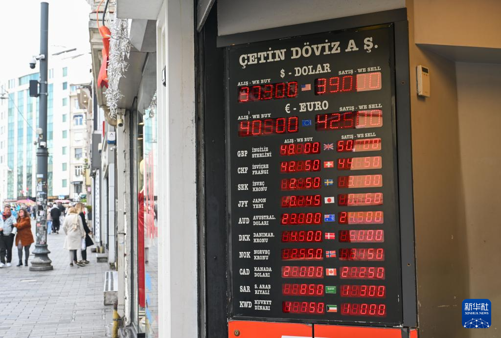 这是3月19日在土耳其伊斯坦布尔拍摄的一家外币兑换点的汇率显示屏。新华社记者 刘磊 摄