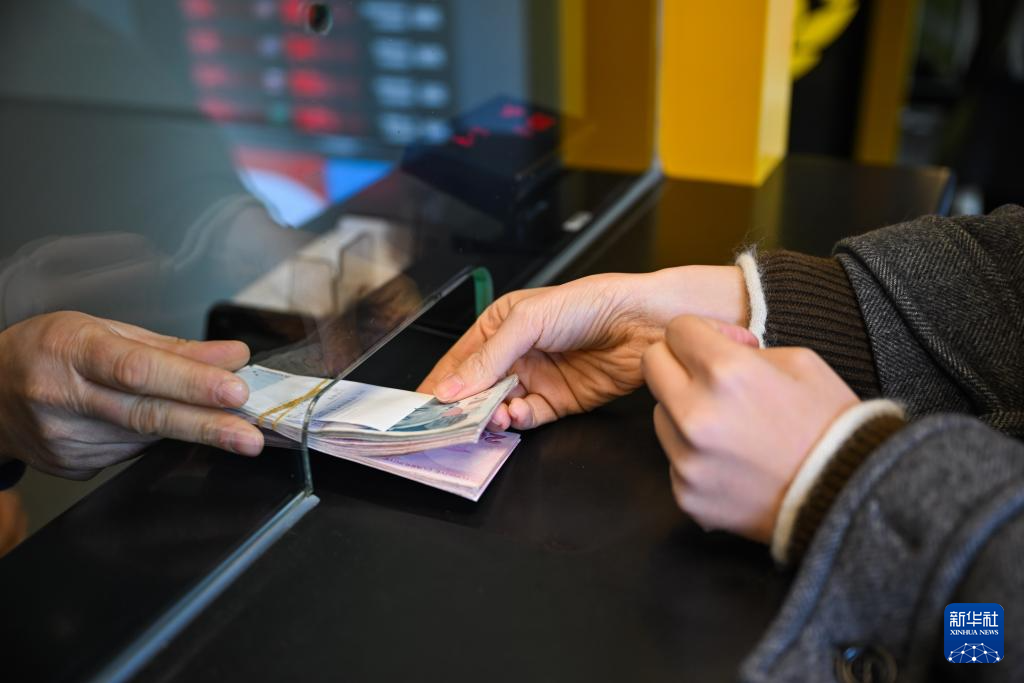 3月19日,顾客在土耳其伊斯坦布尔的一家外币兑换点办理业务。新华社记者 刘磊 摄