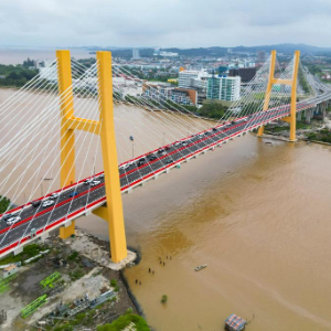 中国企业承建的马来西亚沙捞越日拔大桥项目23日在沙捞越州民都鲁举行通车仪式,该州首座双向四车道双塔双索面斜拉桥正式投入使用。马方各界人士表示,该桥通车将助力马来西亚东部提升互联互通水平。