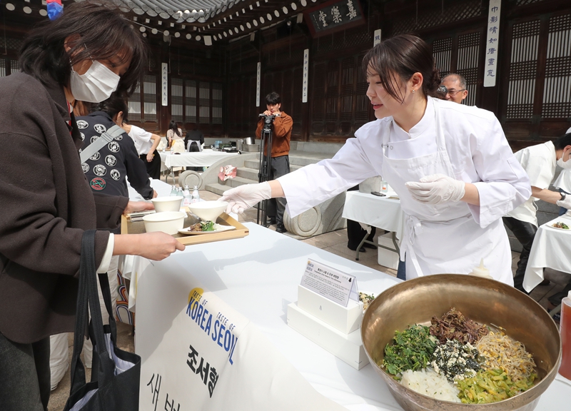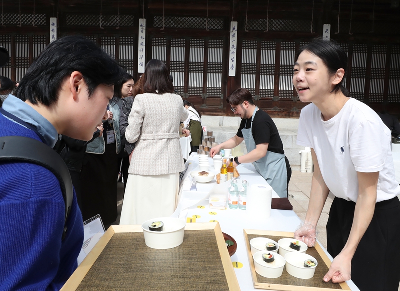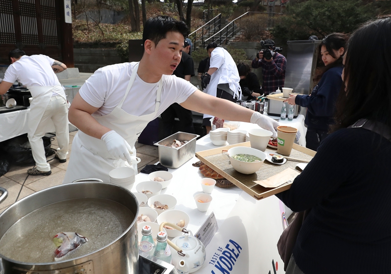 3月25日,韩国农林畜产食品部邀请首尔当地知名餐厅的主厨在位于首尔的韩国之家现场制作韩餐美食,并邀请市民和游客现场体验试吃。