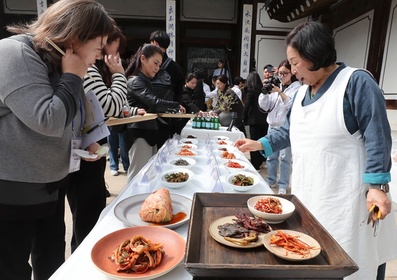 3月25日,食客们在首尔的韩国之家试吃韩式泡菜。记者 姚琪琳 摄