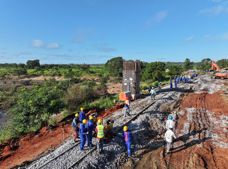 2025年3月20日,莫桑比克纳卡拉走廊铁路项目正进行铁路抢险工作。(中铁二十局供图)