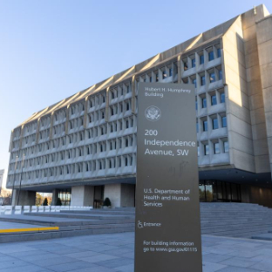 这是3月27日在美国首都华盛顿拍摄的美国卫生与公共服务部大楼外景。