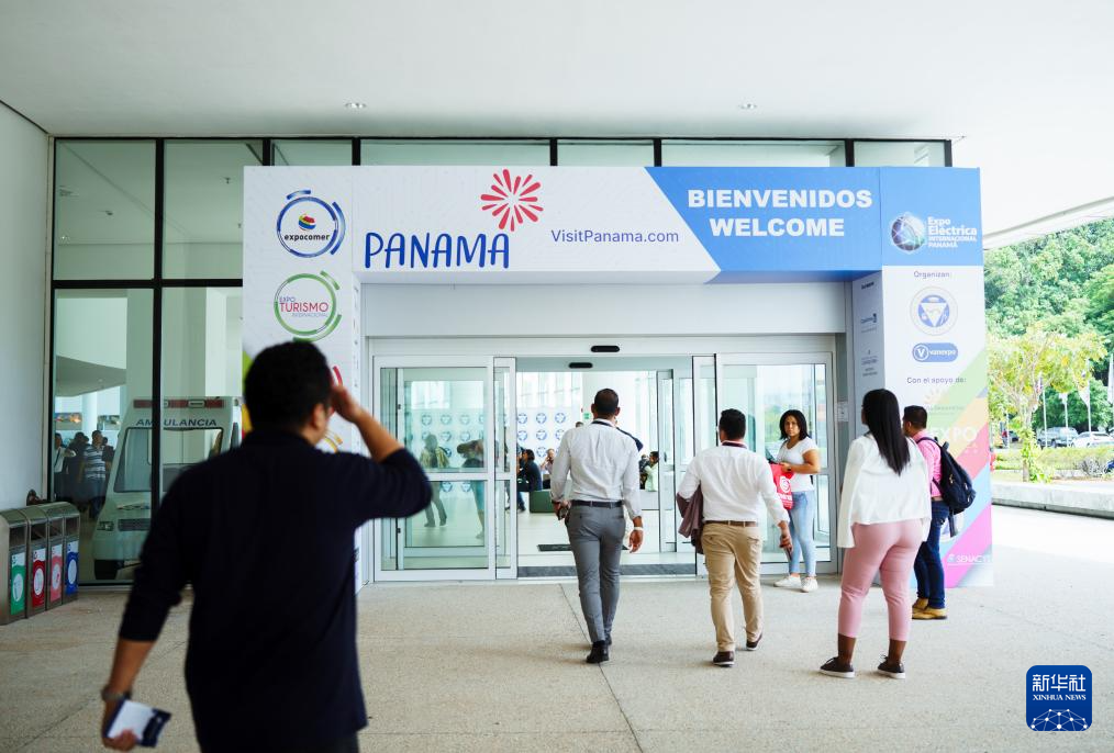 3月26日,在巴拿马首都巴拿马城的第41届国际贸易博览会上,参展人员步入会场。新华社记者 许咏政 摄