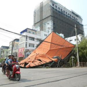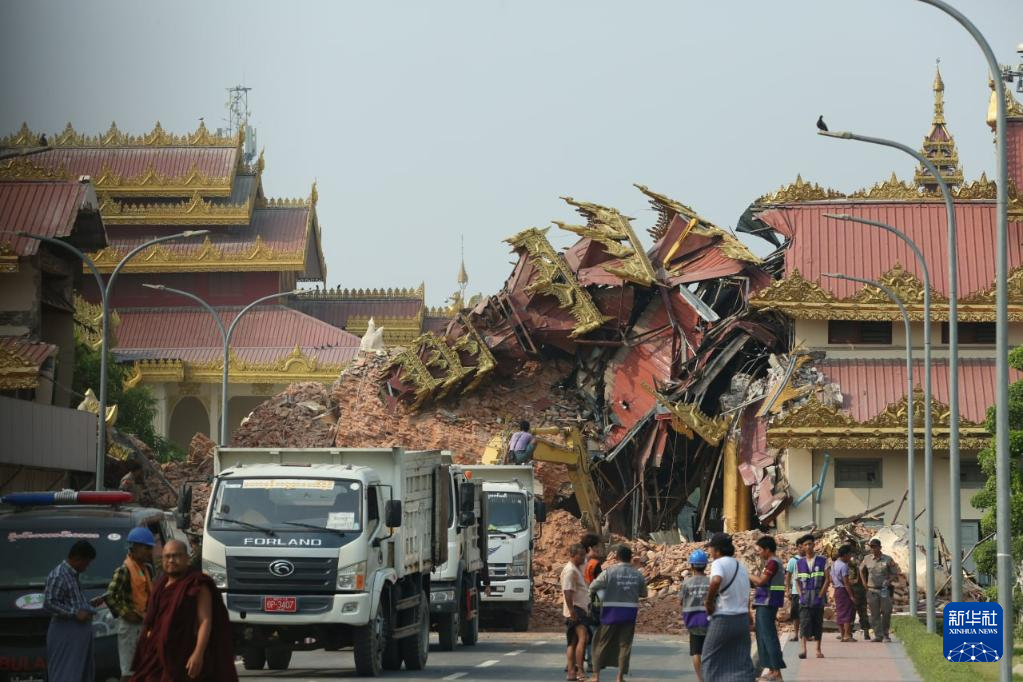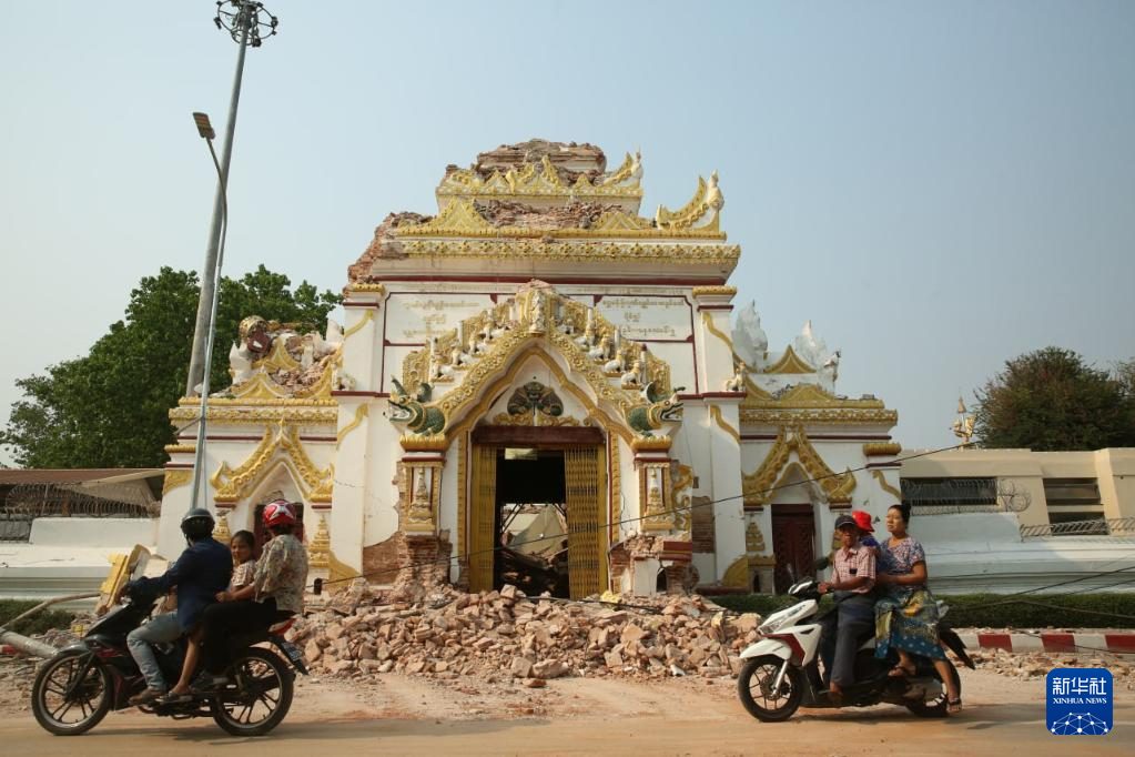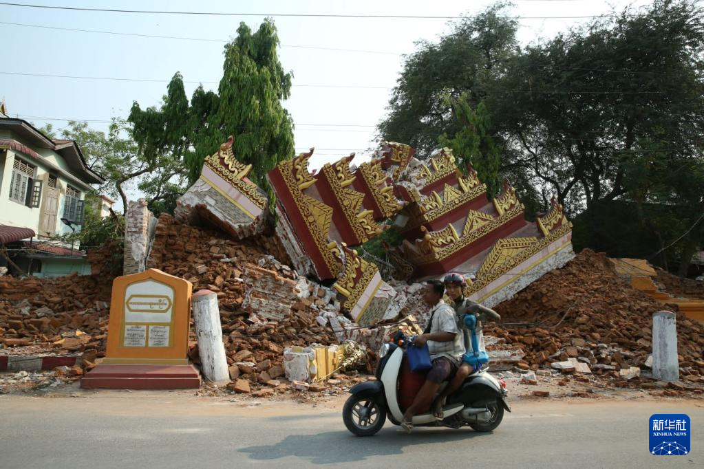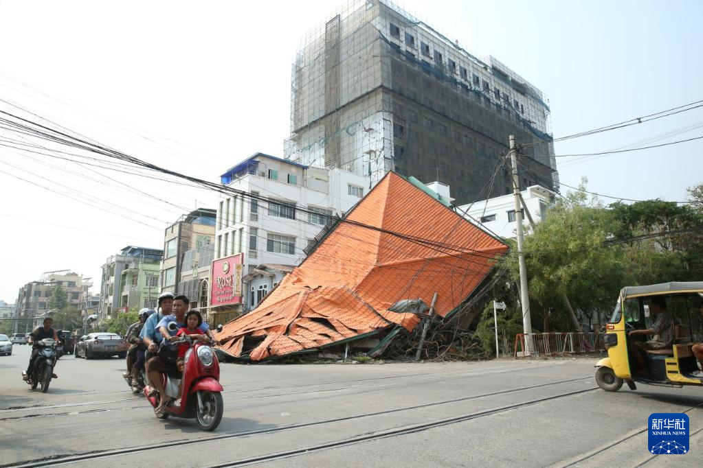 这是3月29日在缅甸曼德勒拍摄的倒塌的建筑。