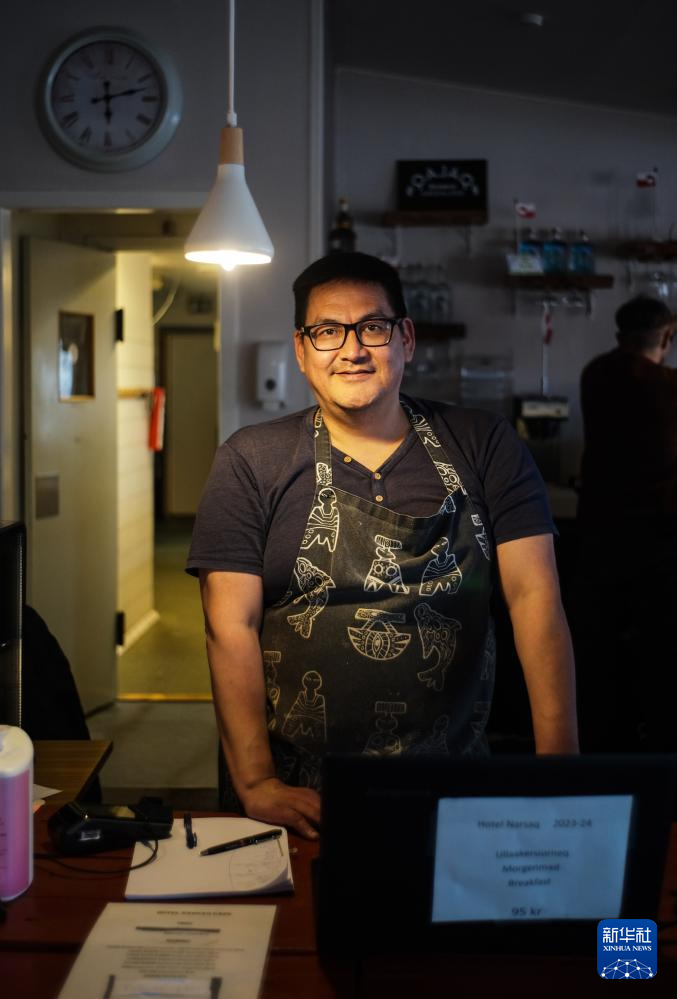 这是3月21日在丹麦自治领地格陵兰岛纳尔萨克拍摄的餐厅主厨卡尔。新华社记者 彭子洋 摄
