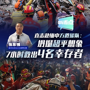 近日,缅甸发生7.9级地震,造成重大人员伤亡和财产损失。强震发生后,应缅甸政府请求,中国政府派遣中国救援队赴缅甸实施国际救援。急赴缅甸震区的中国救援队和公羊救援队合作,冒着酷暑紧张工作,已在7小时内救出4名幸存者。新华社仰光分社首席记者张东强从现场发回报道。