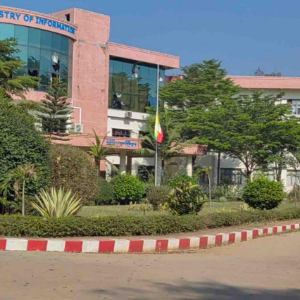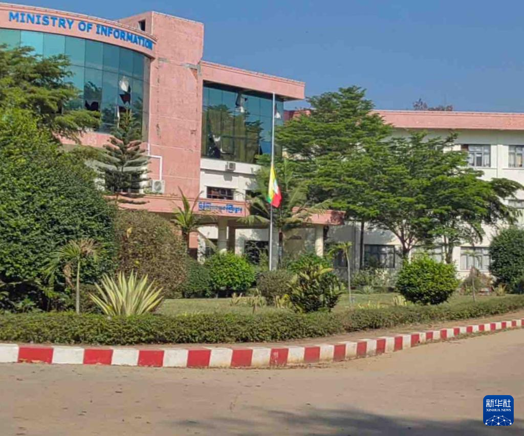 4月1日,位于缅甸首都内比都的缅甸宣传部降半旗志哀。新华社发(缅甸广播电视台供图)