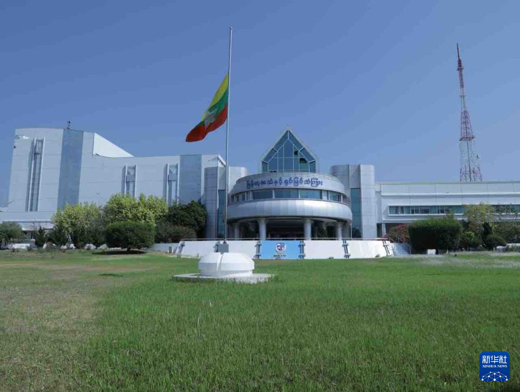 4月1日,位于缅甸首都内比都的缅甸广播电视台总部降半旗志哀。新华社发(缅甸广播电视台供图)