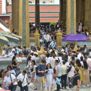 2024年10月3日,中国游客在泰国曼谷大皇宫游览。新华社发(拉亨摄)