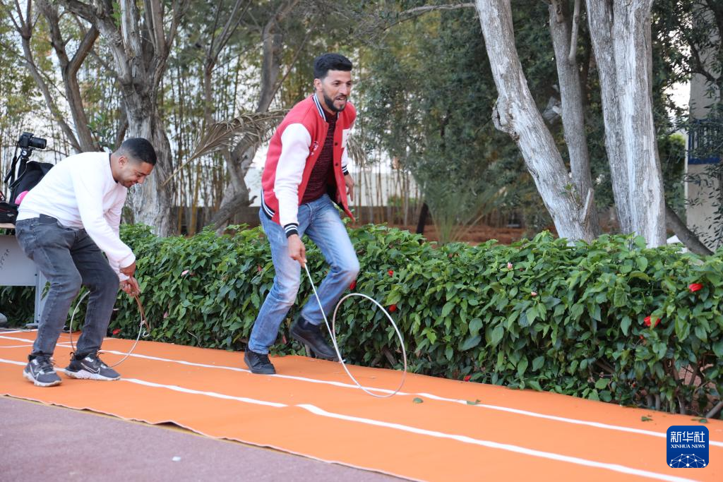此外,中国展台还安排了滚铁环和踢毽子两项中国传统游戏体验活动。不少摩洛哥观众纷纷一展身手,滚铁环的观众各显神通,尽力尝试“驯服”铁环走直线;围圈踢毽的三五好友使出浑身解数,好让彩毽尽可能晚一些掉到地上。这两项活动“参与度拉满”,现场不时发出欢笑声。