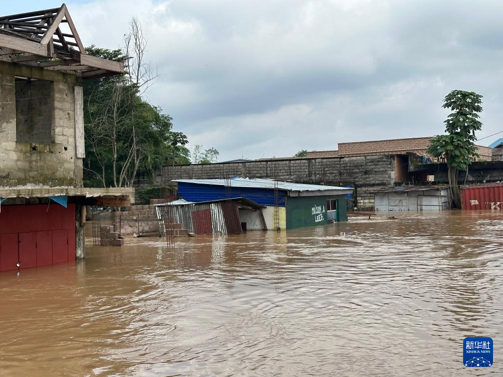 4月6日,在刚果(金)首都金沙萨,街道和建筑被洪水淹没(手机照片)。新华社发