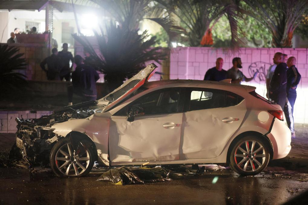 这是4月6日在以色列南部城市阿什凯隆拍摄的损毁汽车。新华社发(伊兰·阿萨亚格摄/基尼图片社)