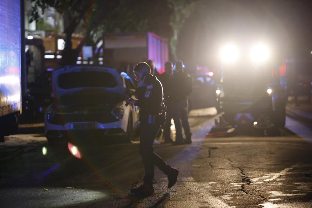 4月6日,在以色列南部城市阿什凯隆,安全人员在火箭弹袭击现场开展工作。新华社发(伊兰·阿萨亚格摄/基尼图片社)