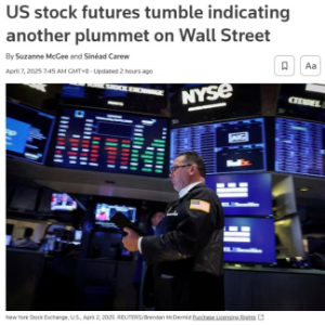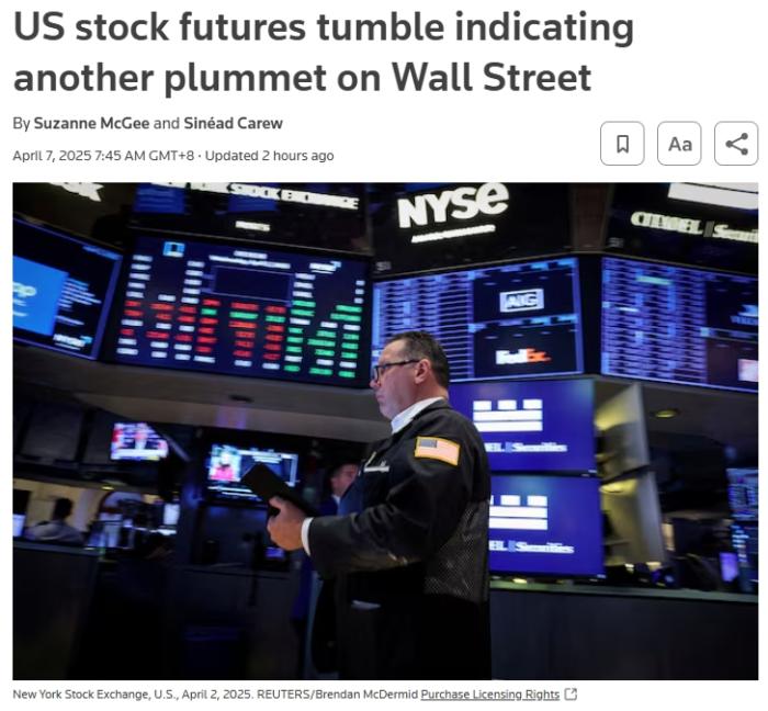Main Street Research首席投资官詹姆斯·德默特认为,上周的抛售压力预计将在周一(4月7日)延续,“因为市场告诉我们,投资者仍然不清楚关税政策,以及对关税的反制措施可能带来的影响,并担心经济增长可能会放缓到完全停滞甚至陷入衰退。”