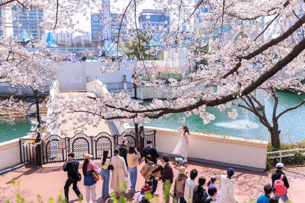 2025年4月6日,人们在韩国首尔石村湖附近欣赏樱花。新华社发(朴晋泽摄)