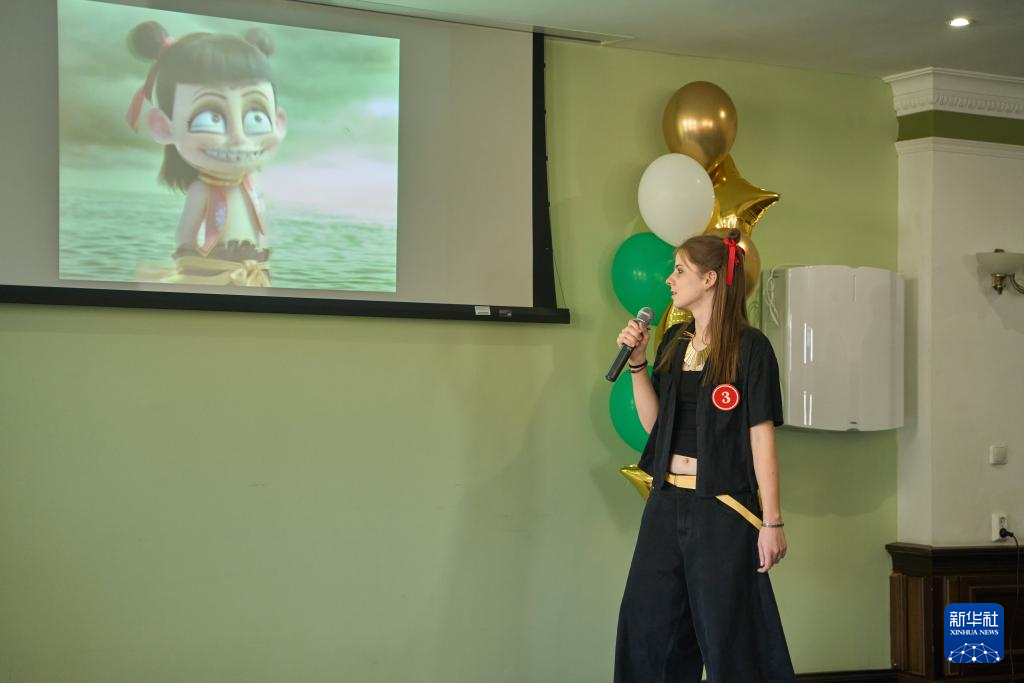 4月10日,在俄罗斯符拉迪沃斯托克,选手进行《哪吒2》配音表演。新华社发(郭飞洲摄)