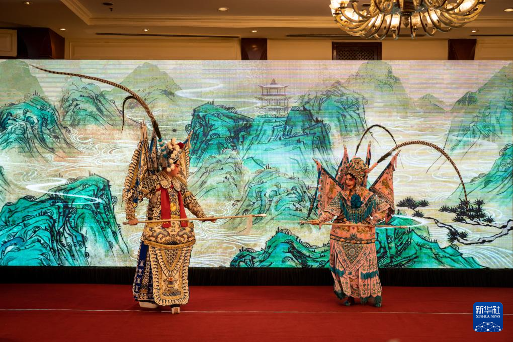 4月15日,在尼泊尔加德满都,演员在广州城市形象推介会上表演粤剧。新华社发(哈里·马哈尔詹摄)