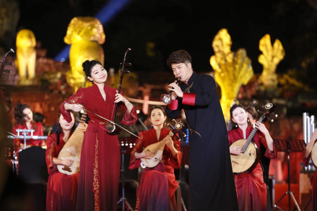 2024年1月13日,艺术家在柬埔寨暹粒举行的“中柬人文交流年”启动仪式上表演。 新华社发(索万纳拉摄)