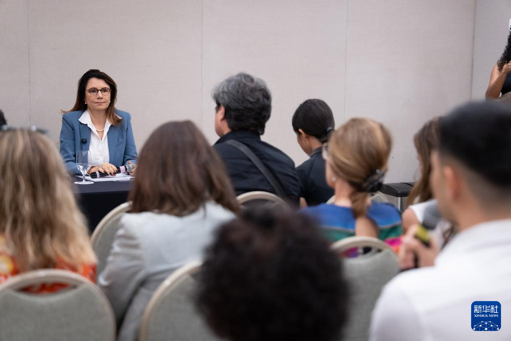 4月17日,在巴西里约热内卢,《联合国气候变化框架公约》第三十次缔约方大会(COP30)首席执行官安娜·托尼出席新闻发布会。新华社记者 王天聪 摄