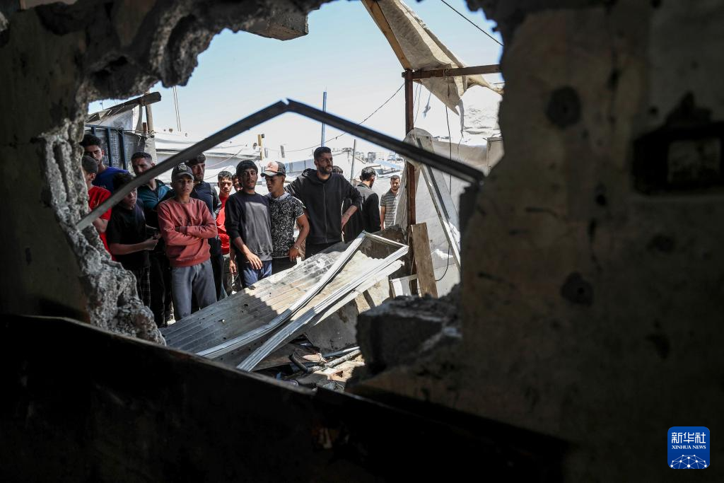 4月17日,在加沙地带北部杰巴利耶难民营,人们查看以军袭击后的废墟。