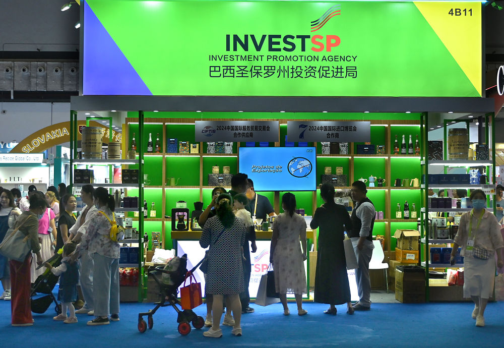 ↑4月16日,位于消博会4号馆内的巴西圣保罗州投资促进局展馆一角。王颂 摄