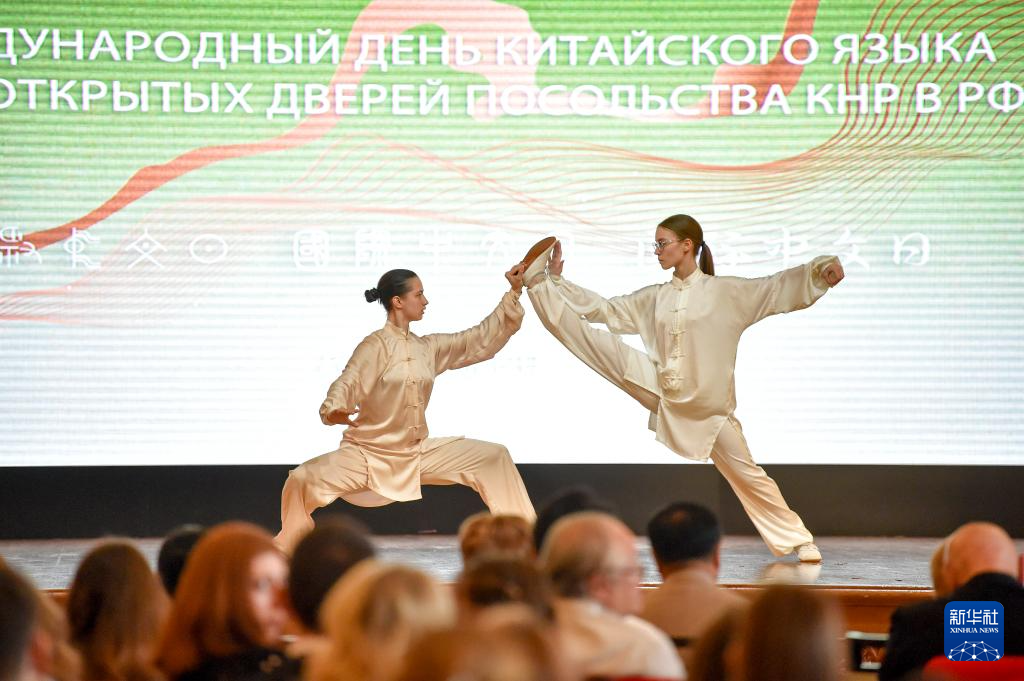 4月20日,学生在俄罗斯首都莫斯科举行的“国际中文日”活动上表演武术节目。