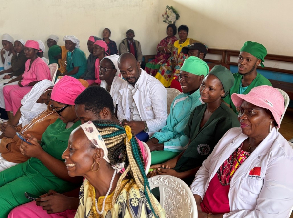 4月23日,在喀麦隆姆巴尔马约医院,当地医护人员和民众等参加疟疾防治宣教。(图片由医疗队提供)