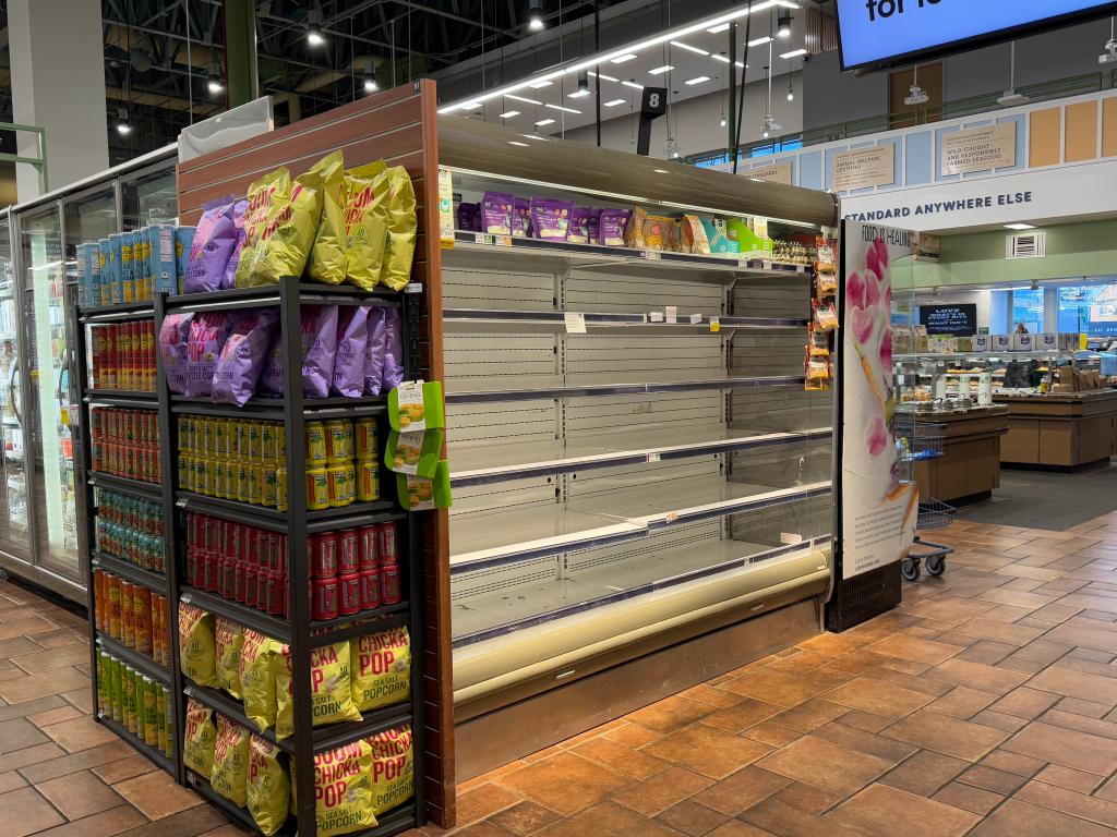 这是1月14日在美国弗吉尼亚州阿灵顿一家连锁超市拍摄的空荡荡的鸡蛋货架。 新华社记者 熊茂伶 摄