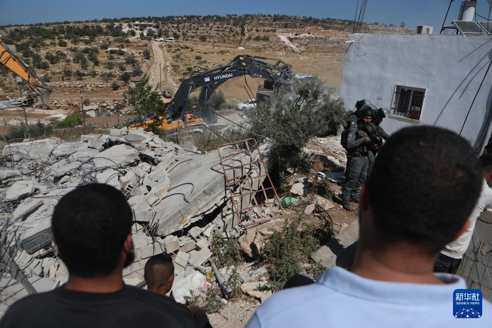 4月28日,在约旦河西岸南部希伯伦,以军以缺乏以色列颁发的许可证为由拆除巴勒斯坦人的房屋。新华社发(马蒙·沃兹沃兹摄)