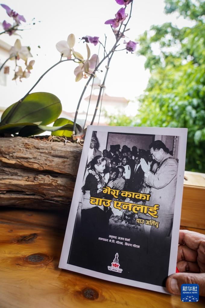 这是4月30日在尼泊尔首都加德满都拍摄的尼泊尔语版《我的七爸周恩来》。新华社发(哈里·马哈尔詹摄)