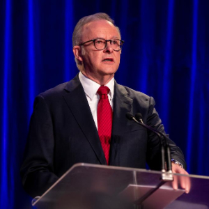 5月3日,在澳大利亚悉尼,澳大利亚总理阿尔巴尼斯在竞选集会上致辞。