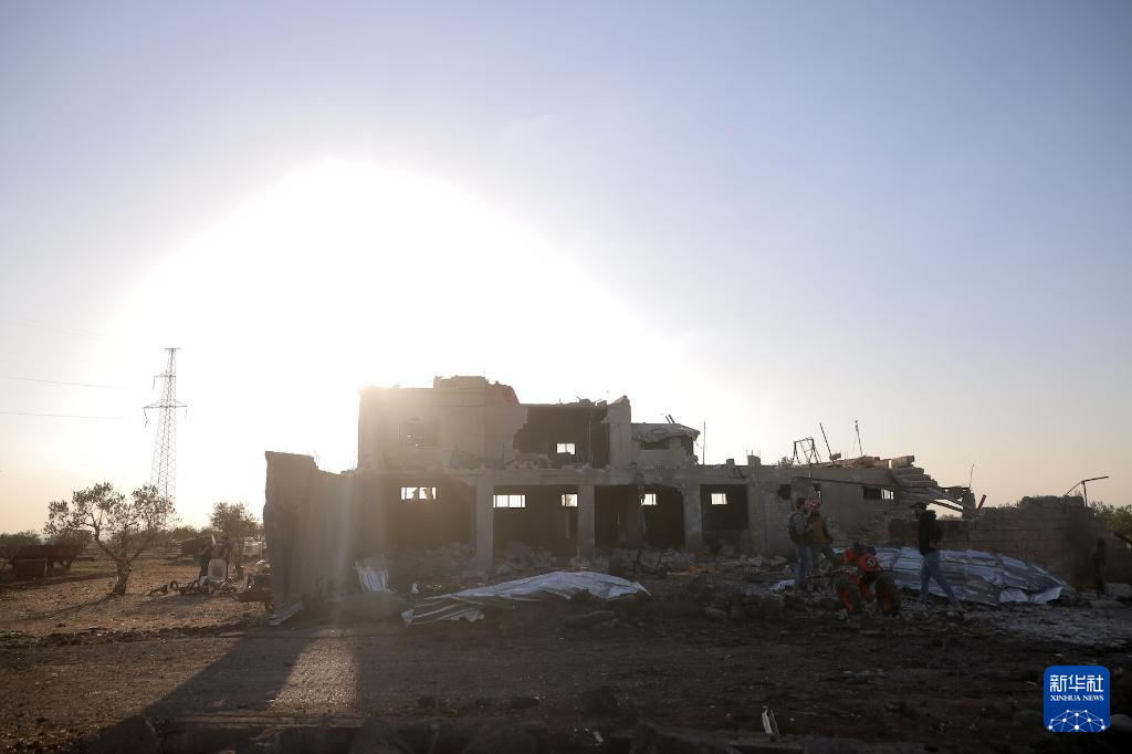5月2日,在叙利亚南部苏韦达省,人们查看在以色列空袭中损毁的建筑。据叙利亚通讯社2日报道,叙南部苏韦达省卡纳克尔镇当天遭到以色列空袭,导致4名平民死亡。