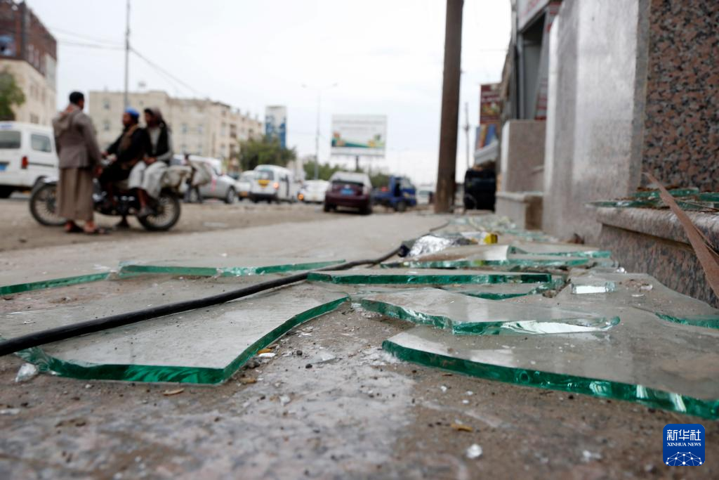 这是5月5日在也门首都萨那一处遭到空袭的地点拍摄的破碎玻璃。新华社发(穆罕默德·穆罕默德摄)