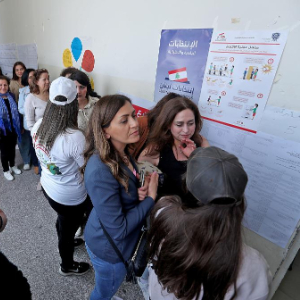 5月4日,选民在黎巴嫩山省的一处投票站投票。