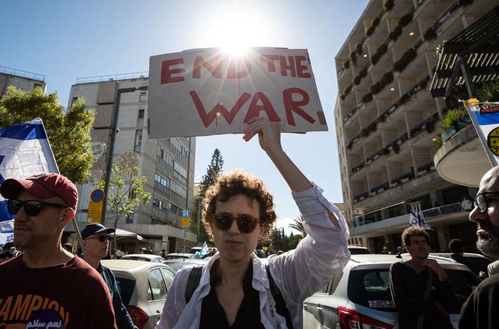 3月19日,人们在位于耶路撒冷的以色列总理府附近参加集会。当日,耶路撒冷爆发大规模民众集会游行,抗议以色列恢复对加沙地带的军事行动。新华社记者 陈君清 摄