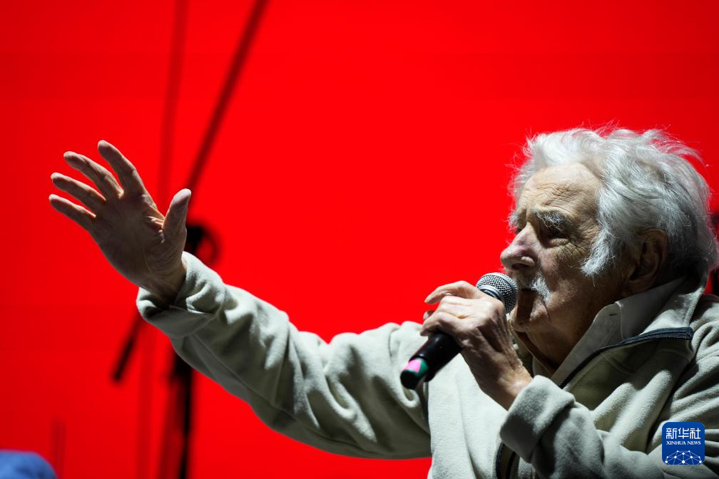 这是何塞·穆希卡在乌拉圭蒙得维的亚发表演讲的资料照片(2022年6月29日摄)。新华社发(尼古拉斯·塞拉亚摄)