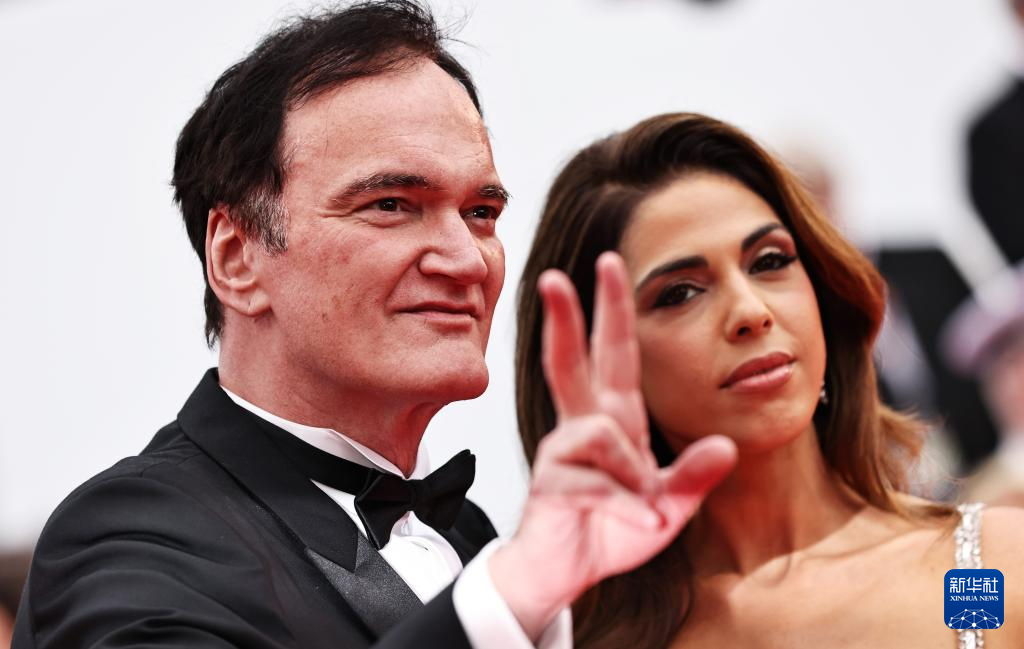 5月13日,在法国戛纳举行的第78届戛纳国际电影节上,美国导演昆汀·塔伦蒂诺(左)亮相开幕式红毯。新华社记者 高静 摄