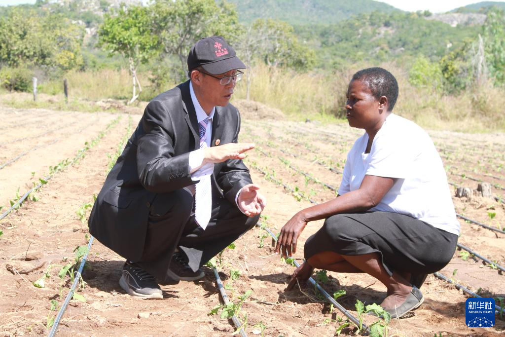 5月14日,在位于津巴布韦中马绍纳兰省的中国—津巴布韦农业合作示范村,中方农业专家与当地村民交谈。新华社发(塔法拉 摄)
