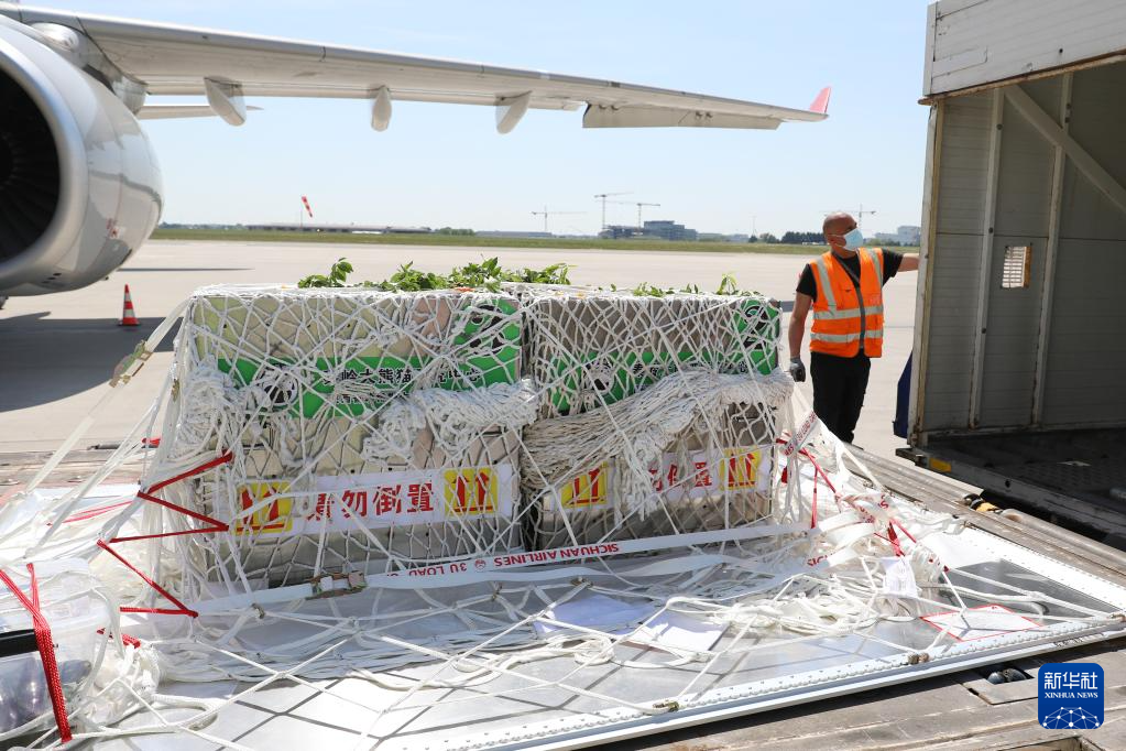 5月14日,载有金丝猴的飞机抵达比利时布鲁塞尔机场。