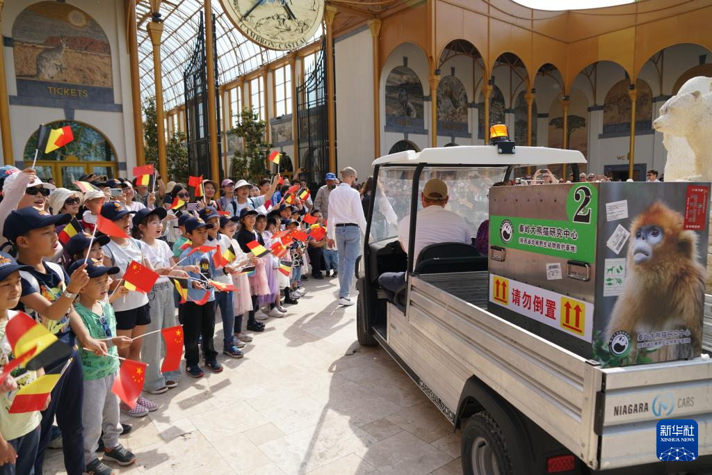 5月14日,在比利时布吕热莱特,人们欢迎金丝猴抵达天堂动物园。
