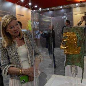 当日,“青铜之光——古蜀文明特展”在新斯米尔尼市政博物馆开幕。展览通过精美的文物复制品、3D打印技术和图文展示,生动呈现以三星堆—金沙遗址为代表的古蜀文明,吸引众多当地民众前来参观。