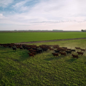 这是5月14日在阿根廷潘帕斯草原莱因迪亚纳牧场拍摄的安格斯牛(无人机照片)。新华社记者 孟鼎博 摄