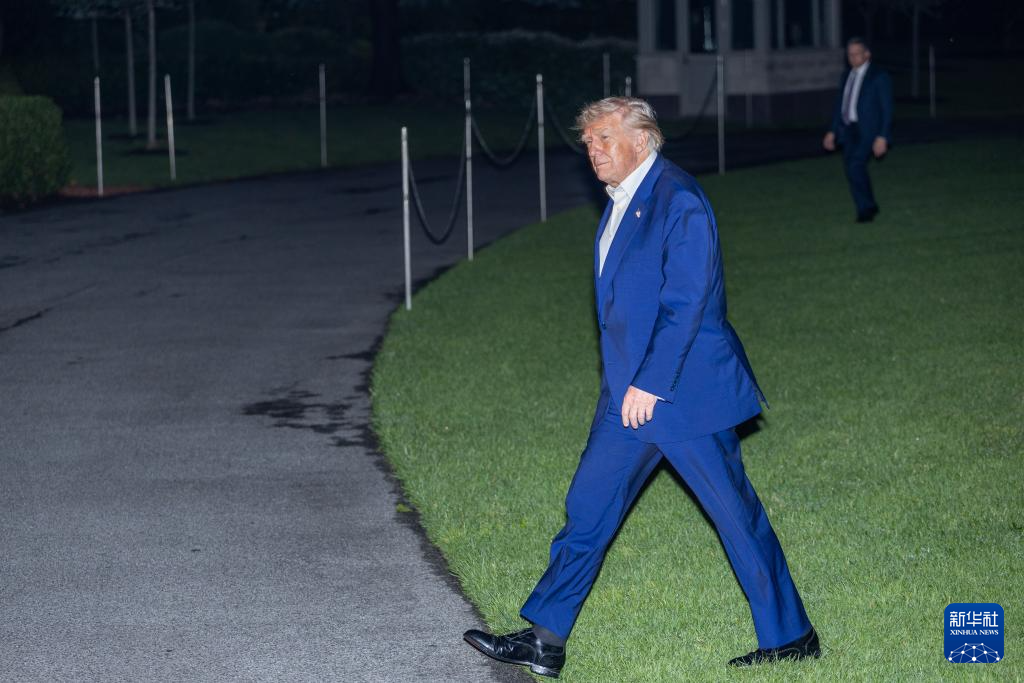5月16日,美国总统特朗普乘直升机返回首都华盛顿白宫。