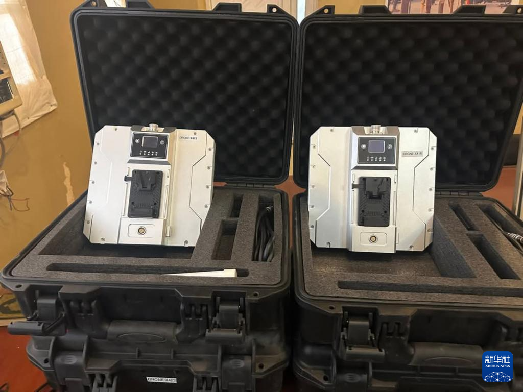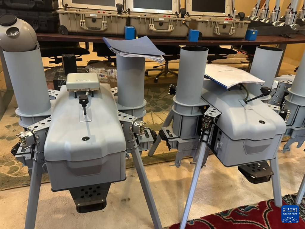 这是5月20日在苏丹首都圈恩图曼市南部萨勒哈地区拍摄的苏丹武装部队缴获的无人机系统组件。新华社发(苏丹文化和新闻部供图)