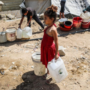 5月20日,在加沙地带北部的杰巴利耶难民营,一名巴勒斯坦女童准备打水。
